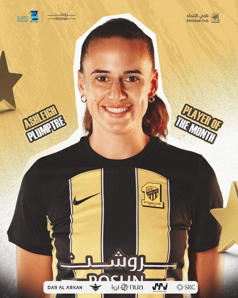 Super Falcons defender Ashleigh Plumptre has been named October Player of The Month in the Saudi Women’s Premier League.