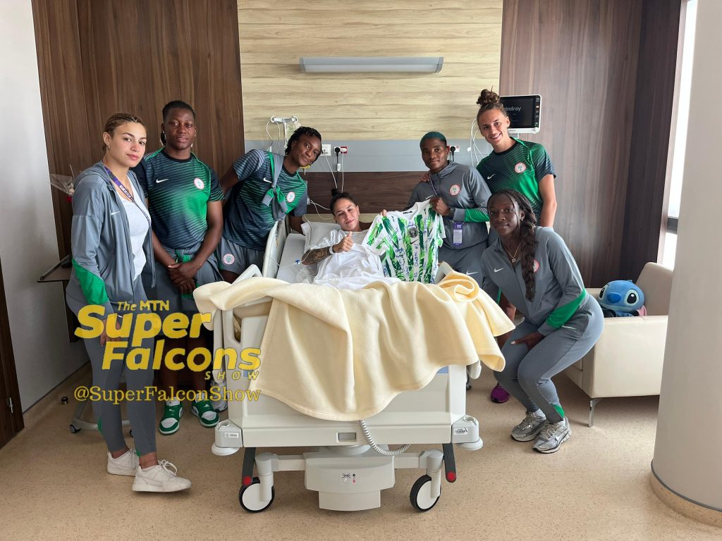 In a heartwarming show of sportsmanship and solidarity, some players from Nigeria’s Super Falcons paid a hospital visit to Banyana Banyana star Gabriela Salgado on Wednesday, following her serious injury during Tuesday’s high-stakes WAFCON semifinal clash between South Africa and Nigeria.